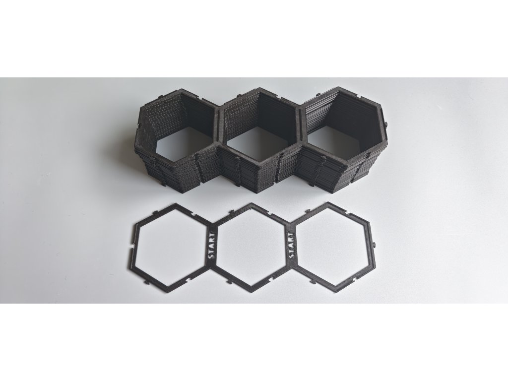 Karak II mřížka 3 pole ve výhodném bundlu 19+1ks pro velikost herní plochy 60 políček pouze v černé barvě (+1 je pro startovní troj-hex který je spojený a má svou vlastní startovní mřížku
