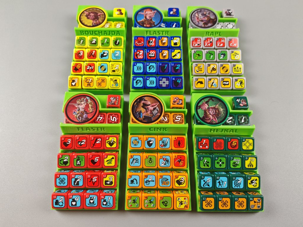 - 6x krabičku pro postavu (základní hry: Bouchajda,Flastr,Rapl,Piket + 2 rozšíření: Hejkal & Cink)