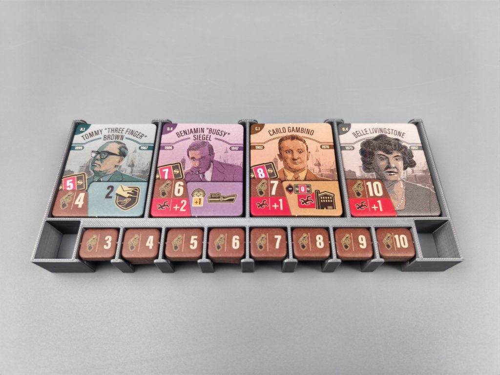 - 1x společná krabička na žetony ranařů, policistů (+žetony čtvrtí policistů), barů (+ žetony čtvrtí gansterů)
