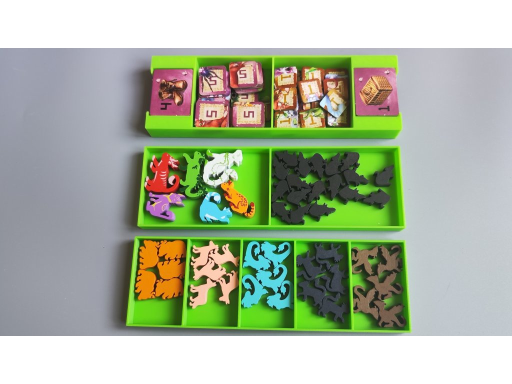 Insert je vytištěný pomocí 3D tiskárny, je navržen tak, aby všechny komponenty skvěle zapadly, ale aby se i dobře vyndavaly. Navíc je tento insert navržen i pro obalené karty. Skladování hry je možné i vertikálně.